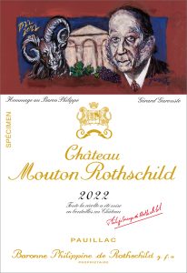 Pour le millésime 2022, Gérard Garouste a choisi de rendre hommage au baron à travers une œuvre riche en symboles. Ses traits évoquent l’héritage, le temps et la transmission, thèmes chers à l’artiste et intrinsèques à l’univers du vin. L’étiquette, où se mêlent figuration et abstraction, reflète la puissance et l’élégance du vin tout en soulignant la profondeur historique de Mouton Rothschild.